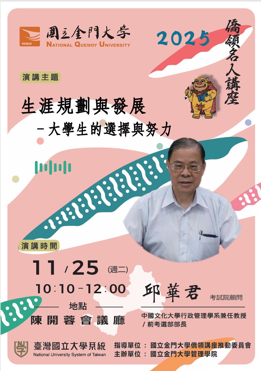【僑領講座】11月25日(二)邱華君顧問蒞臨本校演講,歡迎蒞臨聆聽